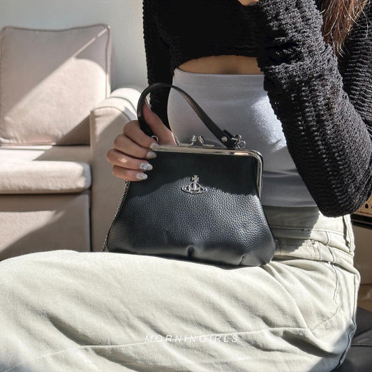 Vivienne Westwood Granny Frame Purse 經典餃子袋 黑色荔枝皮