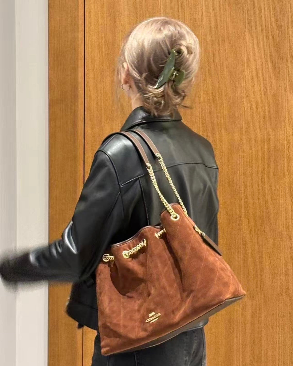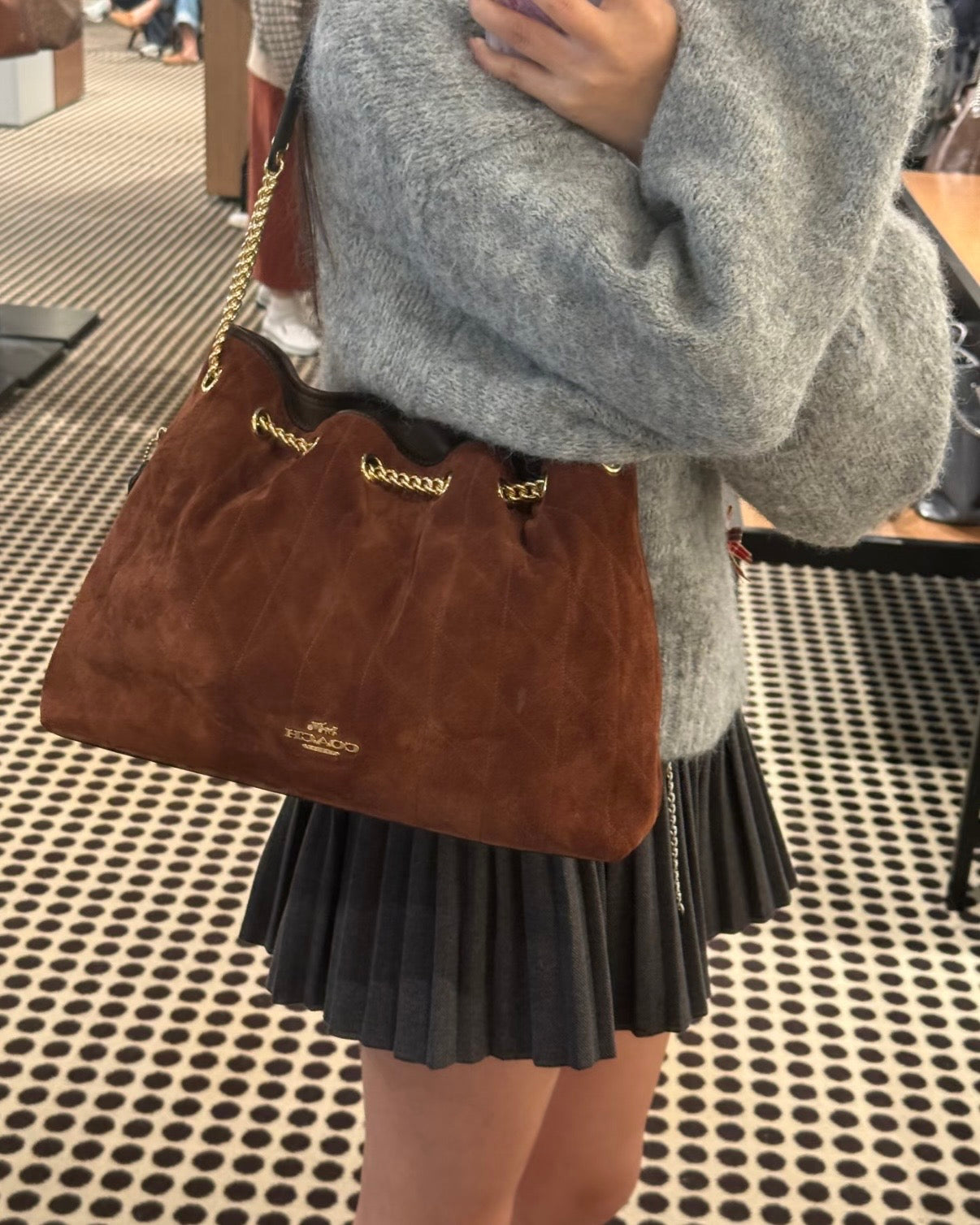Coach Evelyn 流浪袋[絕美麂皮配色 黃金尺寸專櫃6折購入]